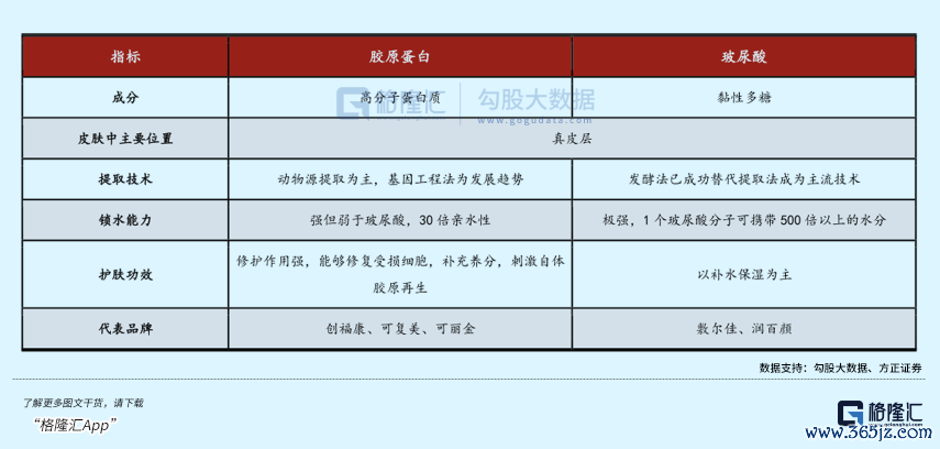 作为医美行业常用的活性成分,胶原蛋白的应用实际上比玻尿酸要更早,但是价格更贵,也是因此,玻尿酸更快地进行了产业化,也更早抢占护肤市场。