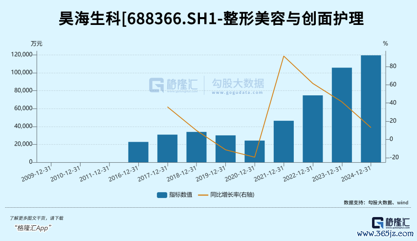 2024年,昊海生科包含玻尿酸产品在内的医疗美容与创面护理产品业务线销售量增长96.07%,近乎翻倍,但收入增速仅13.08%,单价跌幅显著。