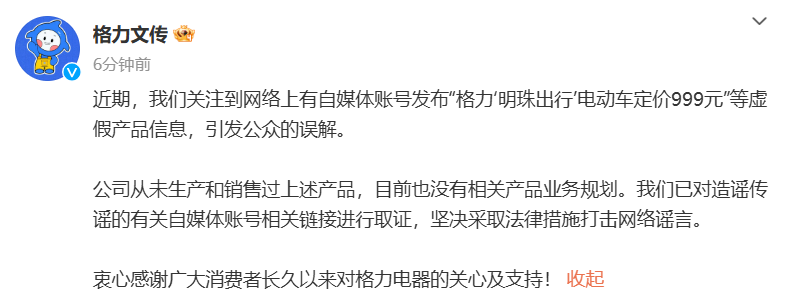 格力电器:从未生产和销售过所谓“999元‘明珠出行’电动车”114配资查询格力电器:从未生产和销售过所谓“999元‘明珠出行’电动车”