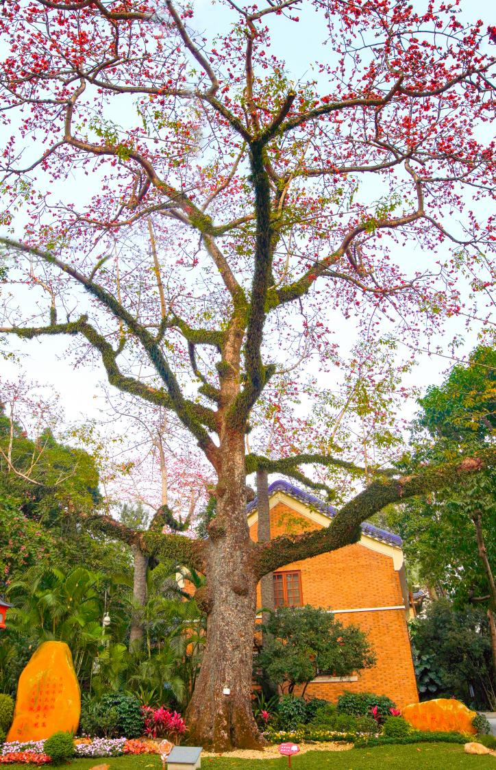 中山纪念堂的“木棉王”已有355岁高龄,冠幅如巨伞,每年红棉盛放,英雄气概十足;