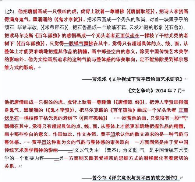 就在近日,有网友发帖指出,贾浅浅2014年7月发表于《文艺争鸣》的学术论文《文学视域下贾平凹绘画艺术研究》,涉嫌抄袭四位不同作者已发表的文章。